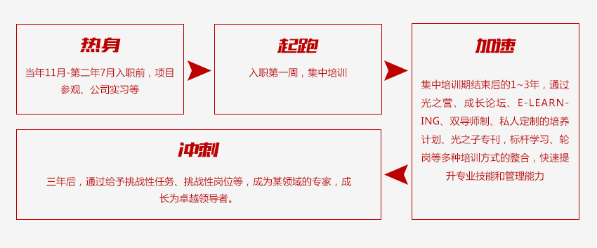 “光之子”计划面向全国高校选拔在学业和社会实践中表现卓越、具有潜力,拥有梦想,愿意通过思考和勤奋获得职业生涯高速成长的2015年应届毕业生。通过公司高管和金牌专业导师的双导师带教辅导机制、度身定做的培养与发展体系,充分挖掘毕业生的优秀潜力、提高毕业生的专业技能,使其在3年时间后快速成长为公司中高层管理人员。